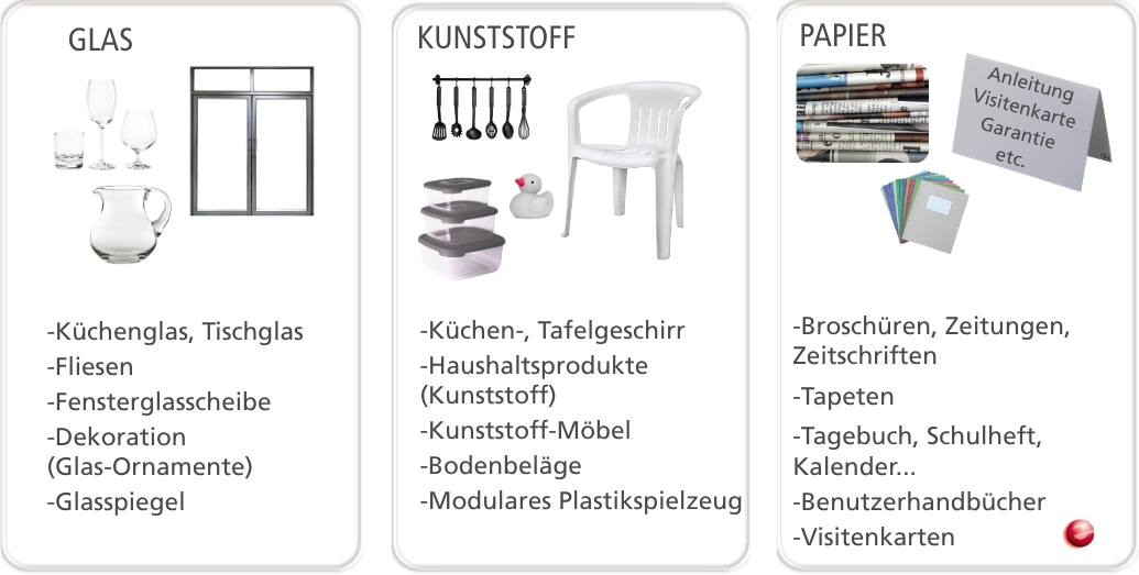 3. Glas, einschließlich Flachglas (Fensterglas).
