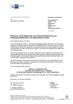 am 9. September organisieren wir gemeinsam mit den IHKs in Schleswig-Holstein eine Veranstaltung über die neuen Regelungen des ElektroG mit den Schwerpunkten Änderungen für die Hersteller, Einzel- und Onlinehandel sowie Neuerungen im Batteriegesetz.