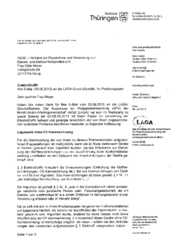 wie Sie dem beigefügten Schreiben des Ausschusses Produktverantwortung (APV) der Bund/Länder-Arbeitsgemeinschaft Abfall (LAGA) entnehmen können, sind wir mit unserer Vorlage einer CE-Konformitätserklärung im Sinne der Elektrostoffverordnung auf fruchtbaren Boden gestoßen.
