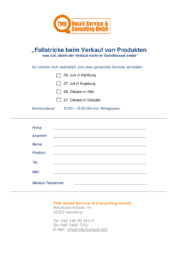 Für Fragen zu diesem Seminar und die Anmeldung steht Ihnen das Team der trade-e-bility GmbH gerne unter der Telefonnummer 040/75068730-0 oder unter sales@trade-e-bility.de zur Verfügung.